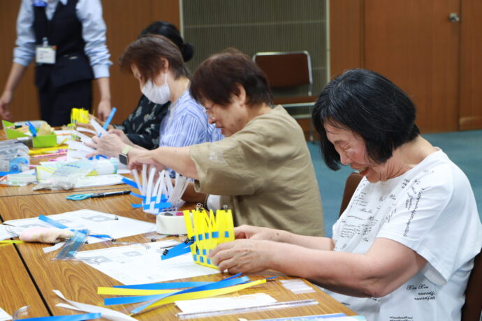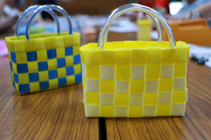 部員は「昔は荷物の梱包にPPバンドがよく使われていたので、集めて手芸の材料にしていました。今はガムテープで梱包している荷物が多いですが、少しずつ集めてまた自宅でも作りたいです」と話しました。